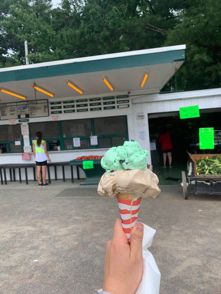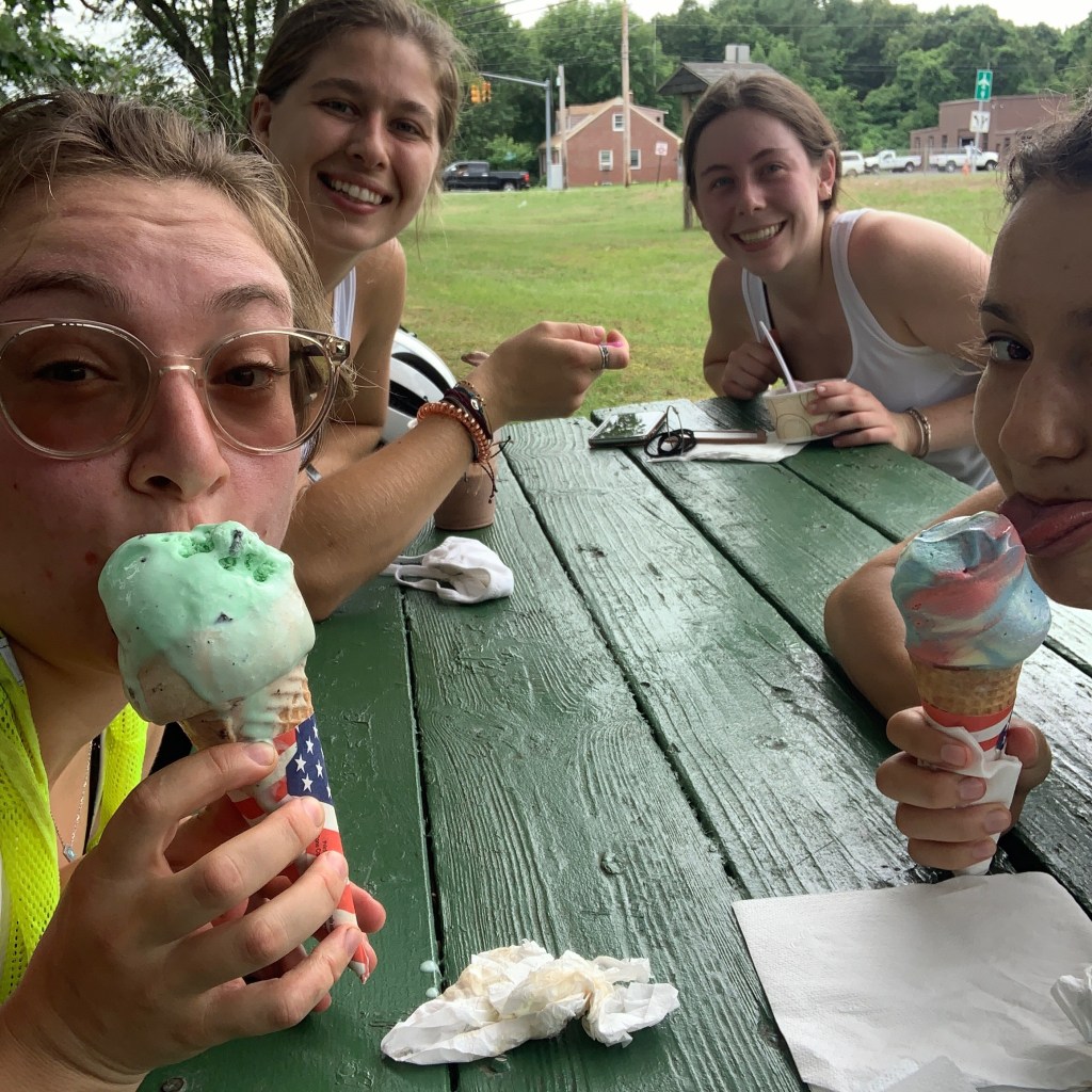 We biked to Northampton, and on our way we discovered a cute ice cream shop. Of course we had to stop! Kelly said it was the best ice cream she had ever had, though it may have been because she was so hungry and tired. I got a flavor called Superman and I have no idea what flavor it actually was but it was delicious. It was just the pick me up we needed, and just in time! We had some solid rolling hills after that were tough. I finally understood why touring bikes have so many gears- hills are a lot harder when you’re lugging all your stuff on the back! But we were rewarded with a beautiful downhill! We didn’t realize the giant size of the hill we had climbed!