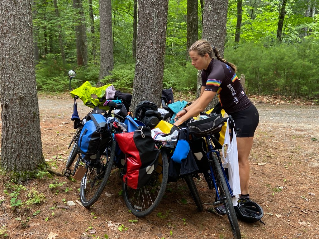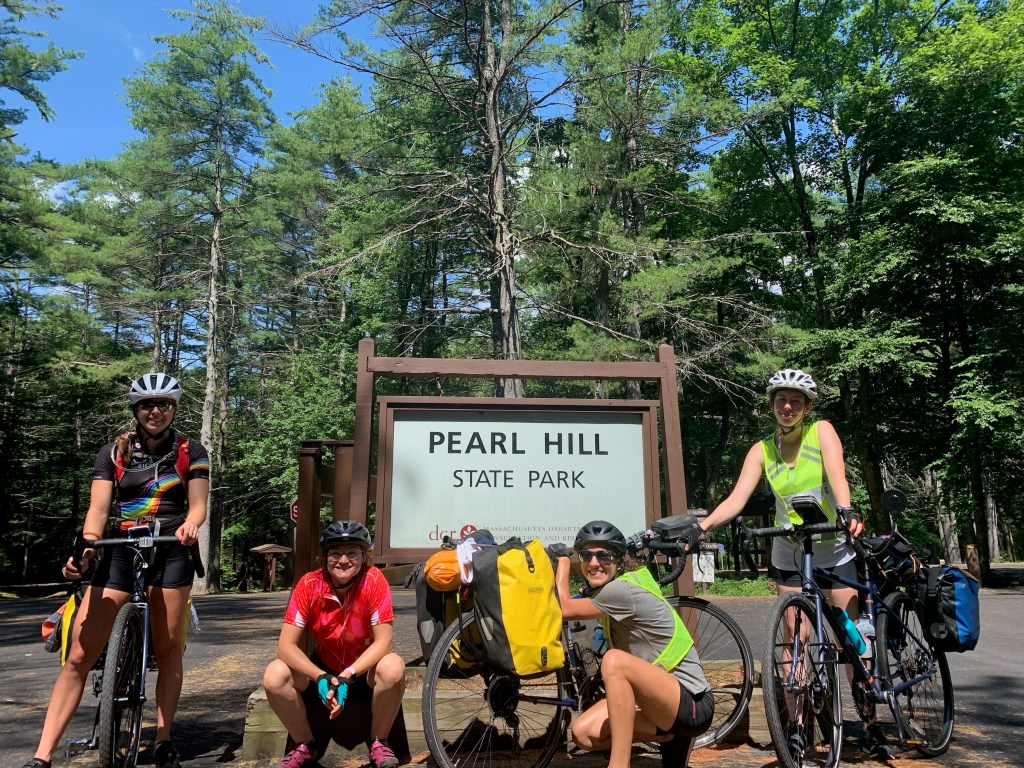 After departing Groton, we rode only a few more miles to Carlisle where we met up with our future classmate Caroline at a local ice creamery. Afterwards, she led our tour to her home where we set up camp for the night. Not even an hour after meeting Caroline, the four of us stripped down in her back yard and thoroughly enjoyed an all natural, outdoor shower by way of her garden’s hose.