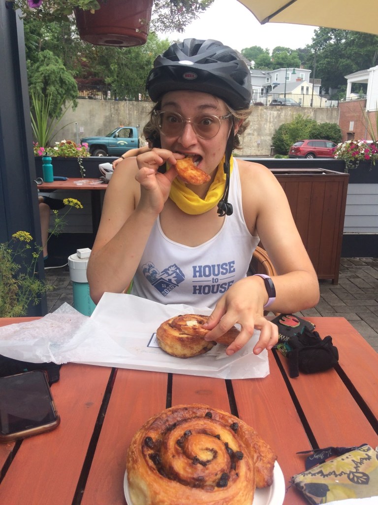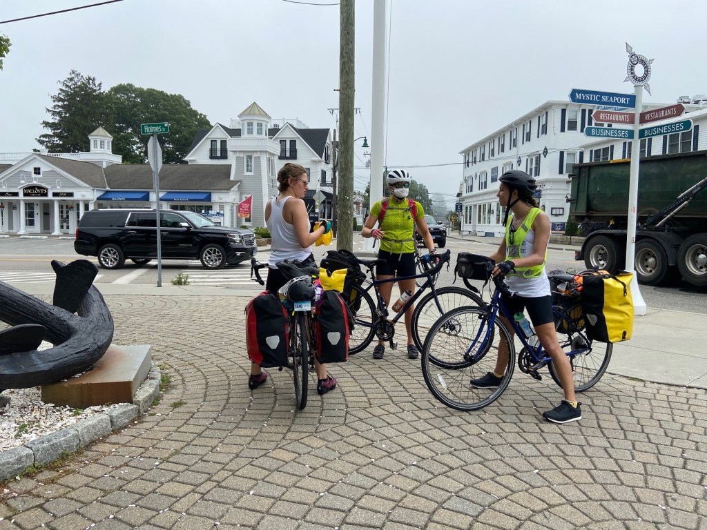 We hopped back on the road and passed through some rolling hills on our way to Mystic. We were very fortunate that the clouds stuck around. Once in Mystic, we stopped at Sift Bakery and had a quick snack. We biked around the center of town and stopped at the Maritime Museum to see some old ships. As we departed Mystic, we were greeted with hot sun and big hills.