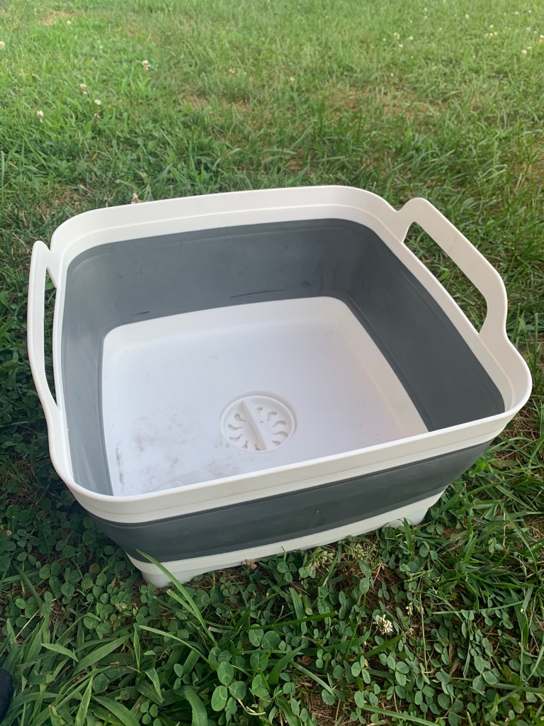 At first it felt a little over the top to bring a kitchen sink. But, we’ve loved having this collapsible one with us. For laundry, dishes, or end-of-day foot soaks, this guy pops up and includes a drain at the bottom. For a real crafty camping sink, works well with a camelback bladder plus gravity for running water.