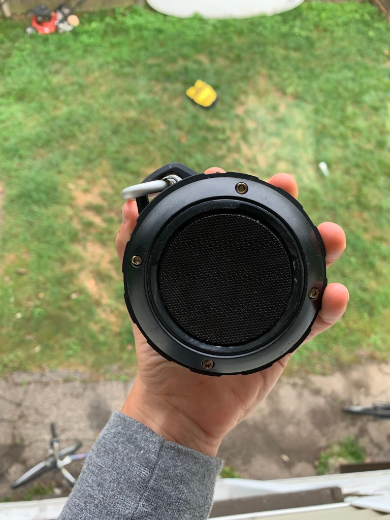 For bumping tunes on the road. Clips onto the bike, or has a suction cup on the back