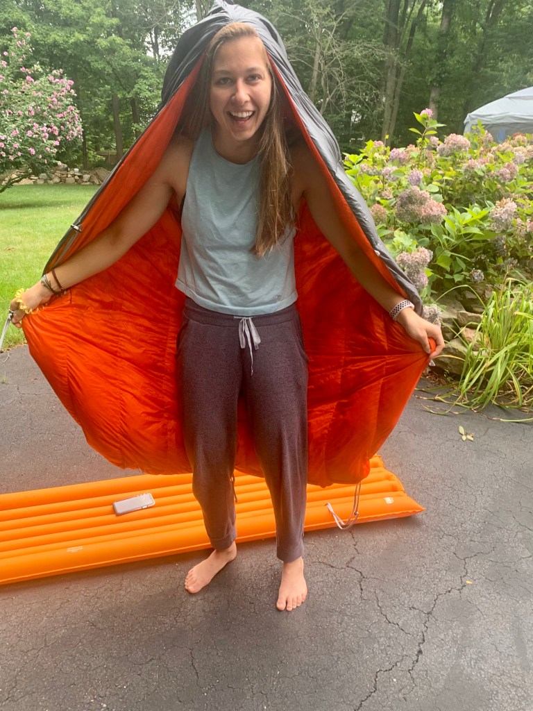 This item came in the evening before we took off. MK was so excited to get this item, she rushed to a faraway REI right before closing to pick it up. Worth every ounce of effort, it has kept her warm but not too warm on these summer nights. It’s backless which is perfect for hot evenings and cool mornings. The bottom ties around your sleeping pad, and there’s a pocket to keep your feet cozy. Or you can snug it all the way around you to like a pig in a blanket. Super lightweight too, 1 lb 3 oz