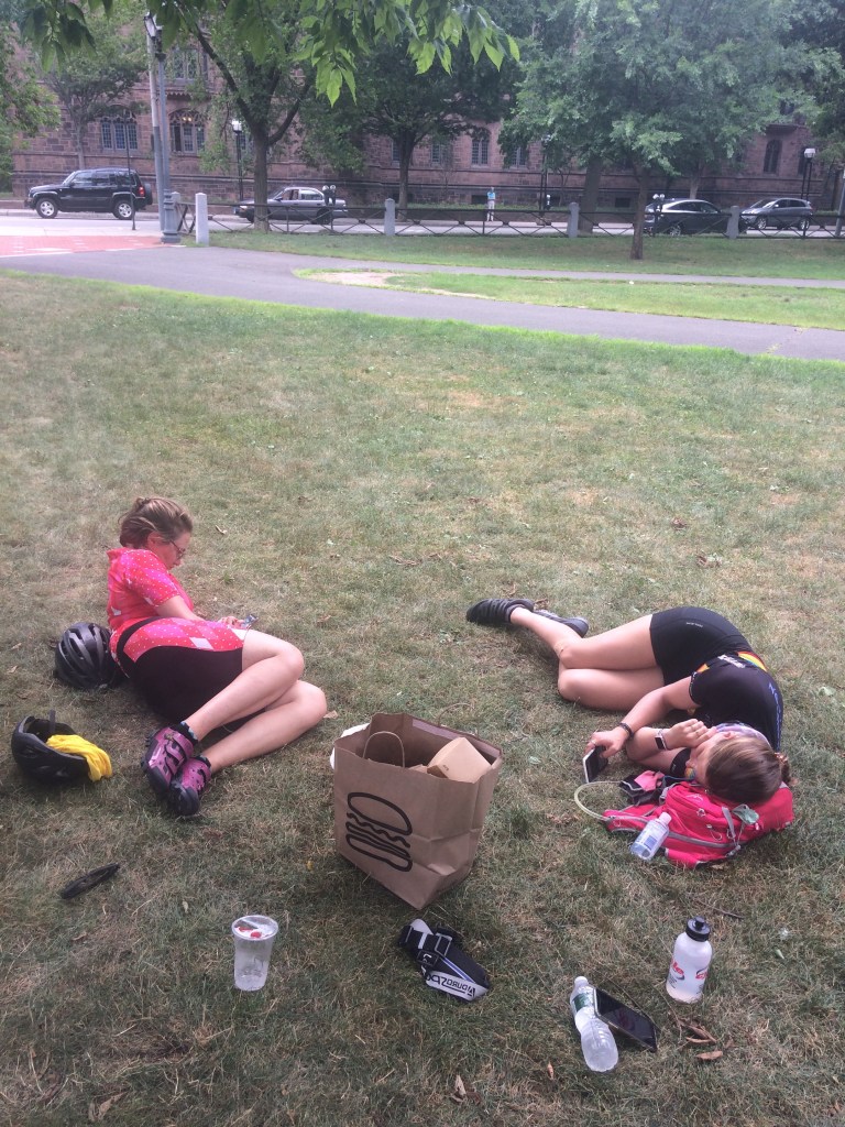 We settled down for lunch on the green and got shake shack and bubble tea for lunch! Truly we are eating so well. Sarah did an amazing job leading us to New Haven and Mary Kate took over for the rest of the ride, since she biked this route often during Block C.