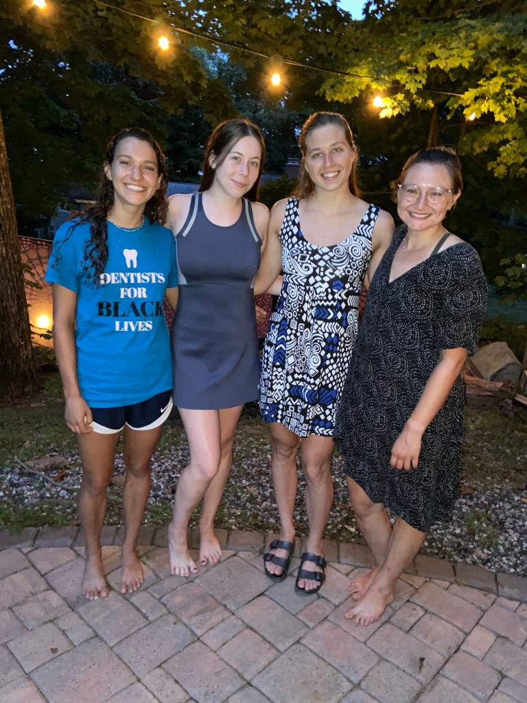 Talia’s parents (and our avid fans) came to Sarah’s to help us celebrate the last night of our trip. Sarah’s parents prepared a terrific meal of apple & BBQ’d chicken, quinoa salad and kugel. Everything was delicious.