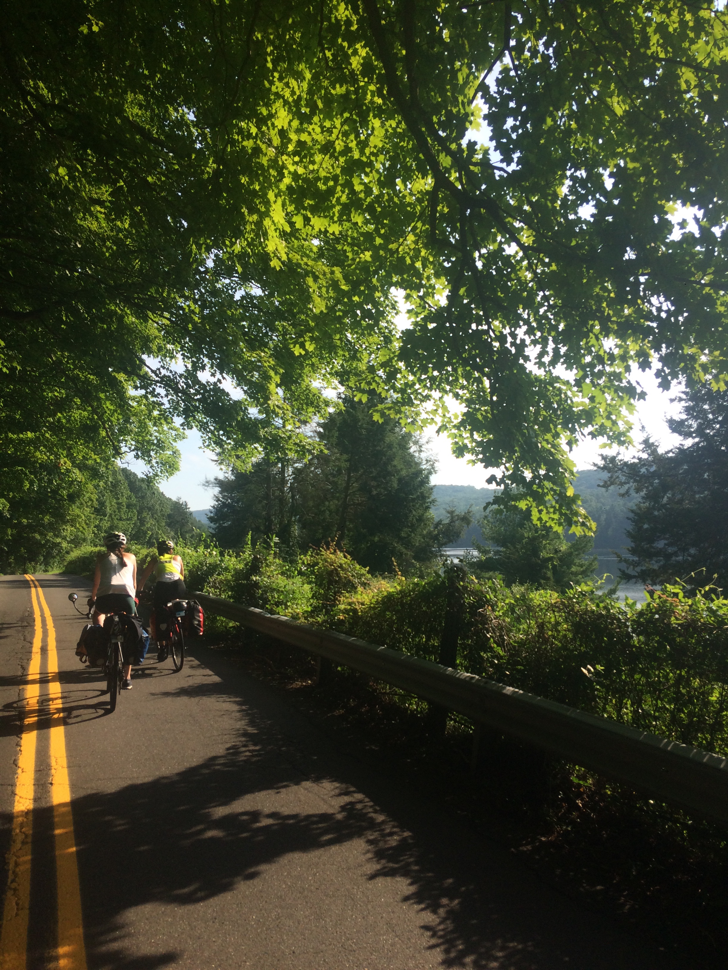 We started off with some beautiful downhill miles to get to the rail trail. Nobody was out on the roads- there were probably less than five cars in the ten or so miles it took us to get to the trail. We were surrounded with beautiful woods.